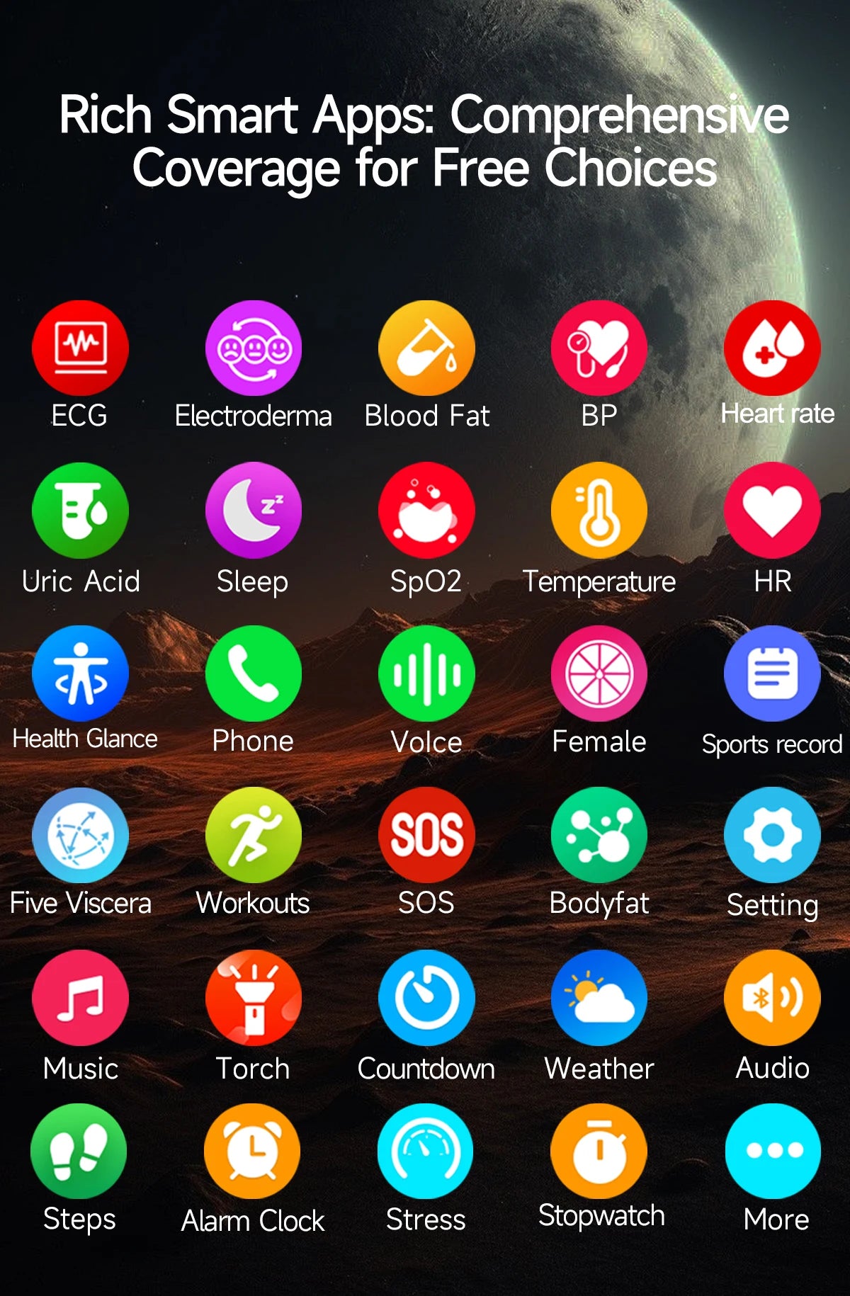 Metrics measured: Heart Rate Monitor,Women's Health Monitoring,Other,Blood Oxygen Monitor,Sleep Monitor,Blood Pressure Monitor,Body Temperature Monitor,Stress Monitor