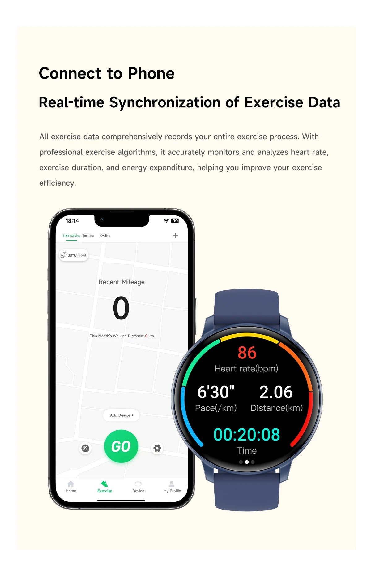 ●Sports mode: walking, running, cycling, mountaineering and other sports types
